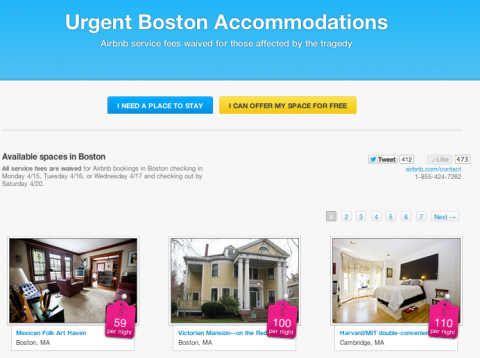 Courtesy of Twitter, we found out that Airbnb was offering free rooms in Boston for anyone who needed them. The apartment owners still get paid, but Airbnb was footing the bill. What an incredible way to support the marathoners and their families who were affected by this tragedy. The company didn’t need to come forward, but making hundreds if not thousands of rooms available to those affected was an amazing gesture of goodwill. Huge kudos to Airbnb for stepping up to the plate when the people in Boston needed them.