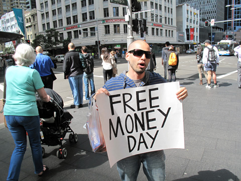 Fueled by the energy and passion of last year’s participants, Free Money Day 2012 will again take place on September 15 all around the world. This year we’re partnering with debt relief groups to include ‘forgiving’ informal debts amongst friends and formal debts between countries and companies. If you would like more information or are interested in participating, please visit the Free Money Day website or join the conversation through Twitter with the hashtag #freemoneyday, and Facebook.