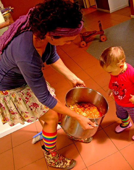 I was expecting six women to my house and, while in the past I would have been dashing around hiding any sign of real life, today I went about making chai and chopping potatoes, ignoring the baskets of dirty laundry lurking in the lounge. MamaBakers aren't interested in the state of one another's houses. It's a small gesture of rebellion in this age of facade that has gathered destructive momentum amongst the mothering community of nonsensical competition and 'you are the state of your house.' Like my wonderful mother-in-law (mother of four, grandmother of nine, and honorary MamaBake elder) says every time she visits and I apologize for our untidiness, "We've come to see you, not your house." So, the washing stayed where it was and lightning didn't strike.