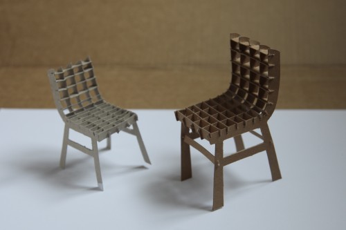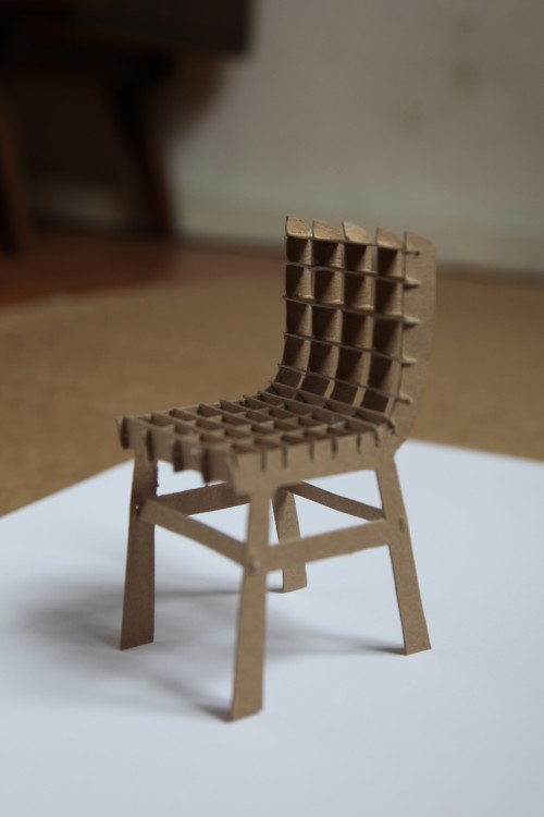 To make a physical model you can test out your prototype with cardboard and scissors, but a full-size wooden version is trickier. I don't have a laser cutter or CNC mill, so the choice is either sending the design files to a manufacturing service like Ponoko or Shapeways (takes a few weeks) or hunting down someone in your local area who can make the chair for you. Depending on where you are, it might take a while to find someone – try 100k Garages or a FabLab – but you'll meet a friendly local and it should be done in an afternoon.