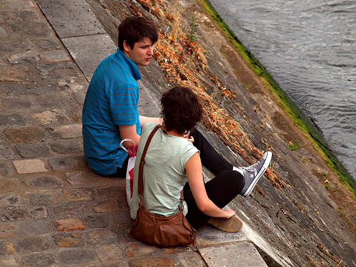 Two young people talk on the banks of the Seine in Paris, France. Photo credit: Zoetnet. Used under Creative Commons license.
