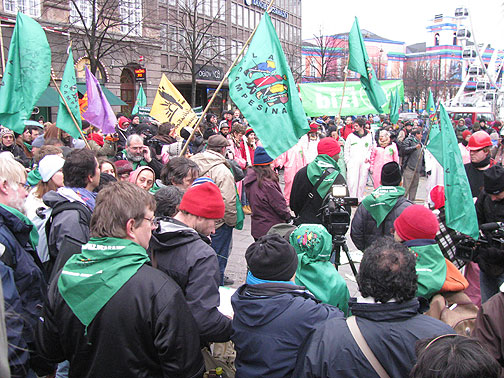The Little Mermaid inspired another effort to educate and counter COP15 lobbyists: a widely distributed ballot for the Angry Mermaid Award. You could vote for Shell Oil, Monsanto, the International Emissions Trading Association, the American Petroleum Institute, the Clean Coal Coalition, and a half dozen others, all well known corporate lobbyists seeking to torpedo the Climate Change negotiations during the past few years. Monsanto was declared the winner on Monday.