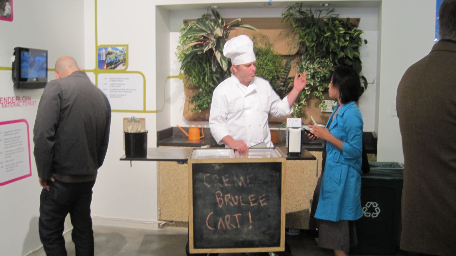 The creme brulee guy, as he's affectionately called, doesn't live at SPUR, but he was on hand for the show's opening as a living exhibit. He wheels around slinging cups of this classic French dessert from his cart. At four bucks a pop, this treat isn't cheap, but this mobile chef changes whatever city corner he winds up on. By combining the techniques of street vending with a hearty dose of technology, the Creme Brulee Cart brings the outside eatery into the 21st century. Even if you can't find this chef at SPUR (although I'm sure they'd love to have a cart-in-residence), you can track him down via Twitter.