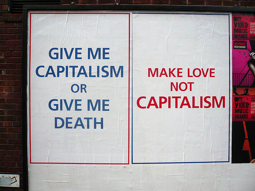 The different takes on capitalism in stark, streetside relief. Photo credit: Michael Mandiberg. Used under Creative Commons license.