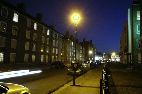 It's amazing what a lot of respect high-viz vest and a couple of traffic pylons will get you, even in Leicester Square. We started work at 8AM, when the only people in the Square were a long queue of tourists waiting for cheap theatre tickets and a few straights clicking over the pavement in their work shoes as they rushed for offices in Soho. Between me and Sal and Amir, we got nine little "security mirrors" placed on the walls of strategic buildings in less than an hour. At one point, a Community Support Officer—one of those fake coppers who sign up for the sheer thrill of the authority—even directed traffic around our ladder. I was glad of all the little IR LEDs I'd strung unobtrusively around my helmet then, for they surely blew out the cameras in his hat and epaulettes.