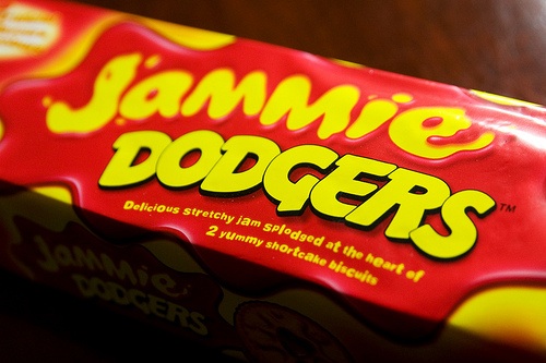 At the tea-break, he grabbed me by the arm and hustled me outside of the leisure centre. We hid under the climbing frame in the playground and he sparked up a gigantic spliff—"it's just something we grow in an abandoned building site, hardly gets you off" he croaked—and passed it over. Then, as the munchies overtook us, he produced an entire packet of Jammie Dodgers—shortbread cookies with raspberry jam in the middle—from under his shirt, lifted from the snacks table.