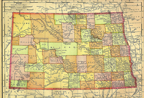 A map of North Dakota's rail lines circa 1895. Photo credit: Brian Swan. Used under Creative Commons license.