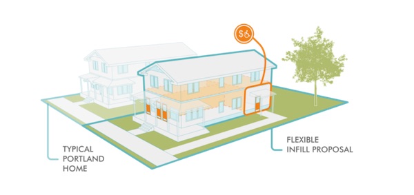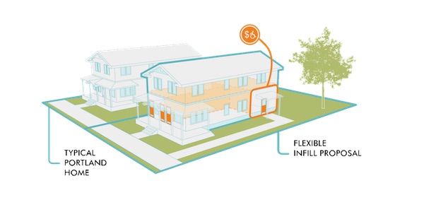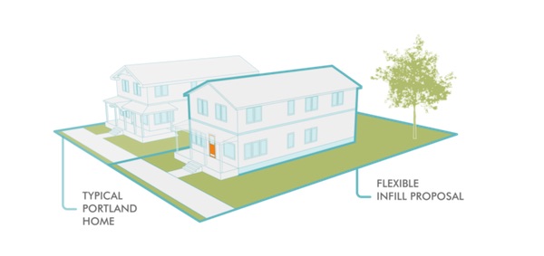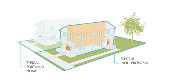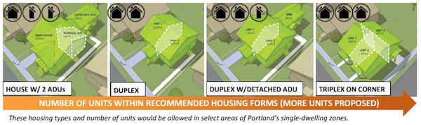 Portland residential infill-proposed housing forms (image from Residential Infill Report, Oct 2016, p. 15) by City of Portland.