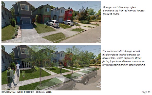 Front yards would need to be larger, and more on-street parking would be preserved