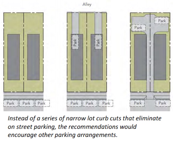 The city’s proposal is to maximize parking efficiency by legalizing alley-facing driveways and shared driveways leading behind the house.