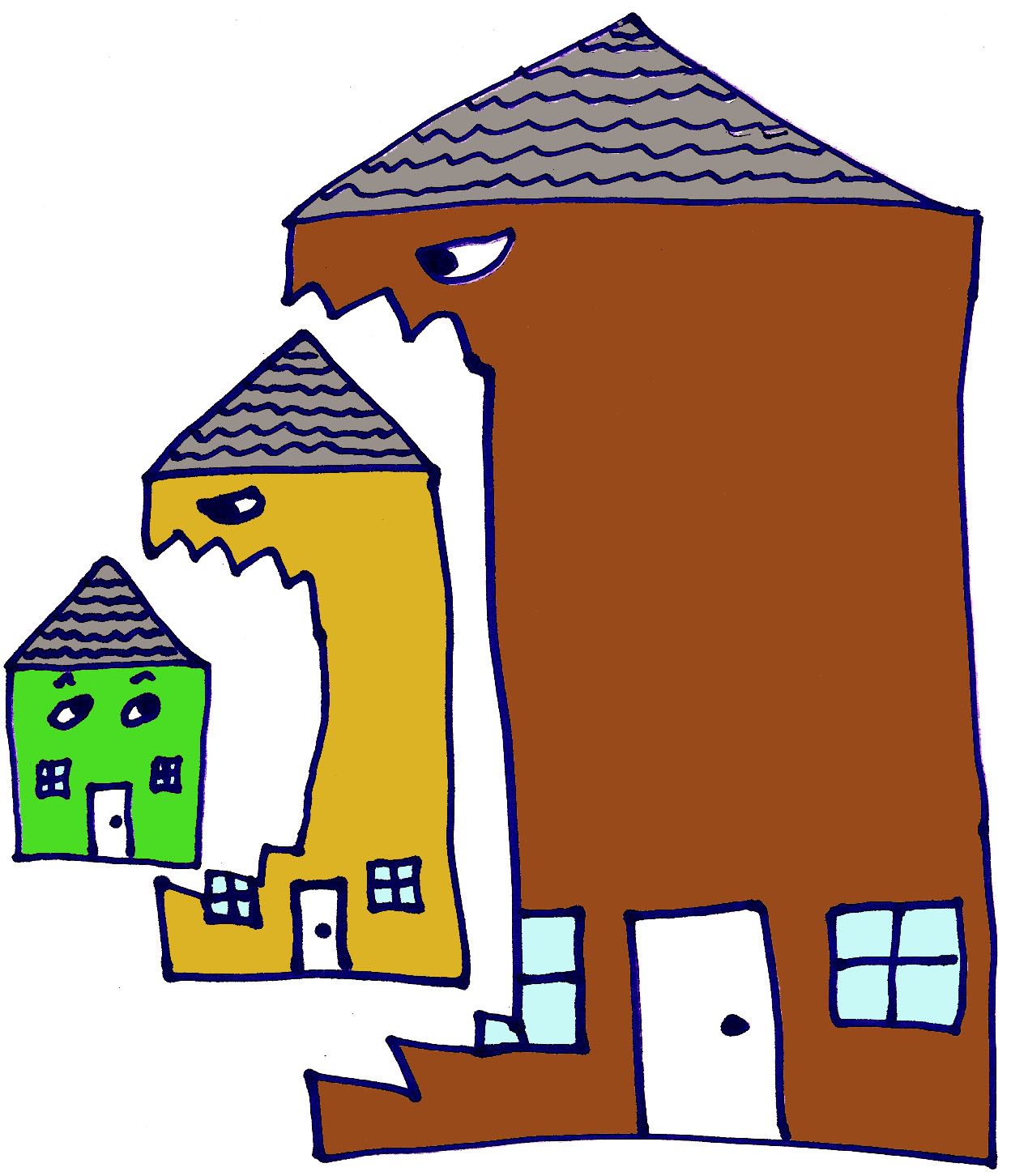 Our housing market also incentivizes wastefulness, as the cost of tearing down a perfectly good small house and replacing it with a “McMansion” or “Garage Mahal” is often small compared to the potential increase in property value. The housing market ends up looking, more or less, like this: