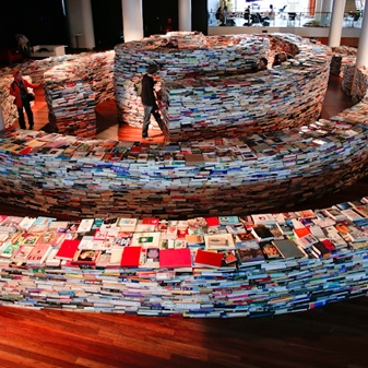Here's an art project that would have made Jorge Luis Borges smile: a massive labyrinth in the shape of one of the author's fingerprints, constructed out of 250,000 books. The labyrinth was built to coincide with the 2012 Summer Olympics in London by artists Marcos Saboya, Gualter Pupo, and over fifty volunteers. Lots of photos and video at Colossal.