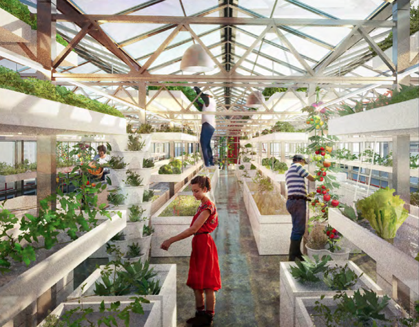 An urban aquaponics greenhouse provides fish and vegetables in one fell swoop. Photo credit: Urban Farmers Ltd. Used under Creative Commons license.