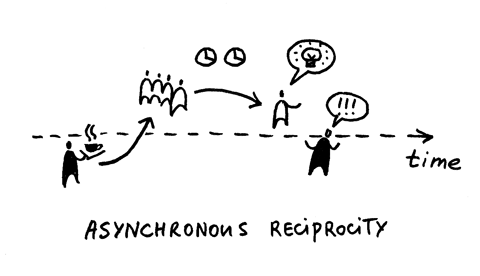 Of course, in the ICT sector, gift economies have re-emerged over the last few decades, for instance around operating systems such as GNU and Linux.[1] In the meeting business, though, they were unheard of. Seats2meet.com threw a potlatch because it wanted to establish a bond with the emerging group of independent professionals. And they didn’t need to be anthropologists to understand the notion of asynchronous reciprocity.