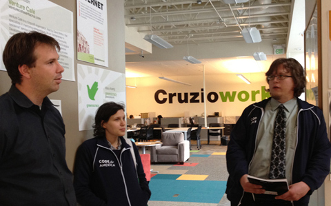 Following a month-long orientation in San Francisco, the Santa Cruz team, which is made up of web developer and designer Ruthie Bendor, graphic designer Tamara Shopsin, and website and application developer Jim Craner, is now in Santa Cruz, meeting the local tech community and government officials, shadowing city planners and getting a handle on what the project entails. They need to develop a lightweight back-end that provides easy access to the necessary information as well as a user interface (UI) that is clean, clear and visually pleasing.