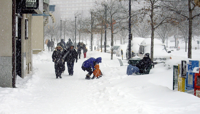 Even a blizzard doesn't dampen streetlife in America's most walkable suburb. Photo credit: Ben Lopatin.