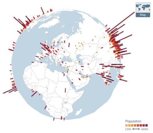 Predicted global population centers in 2025; click for interactive